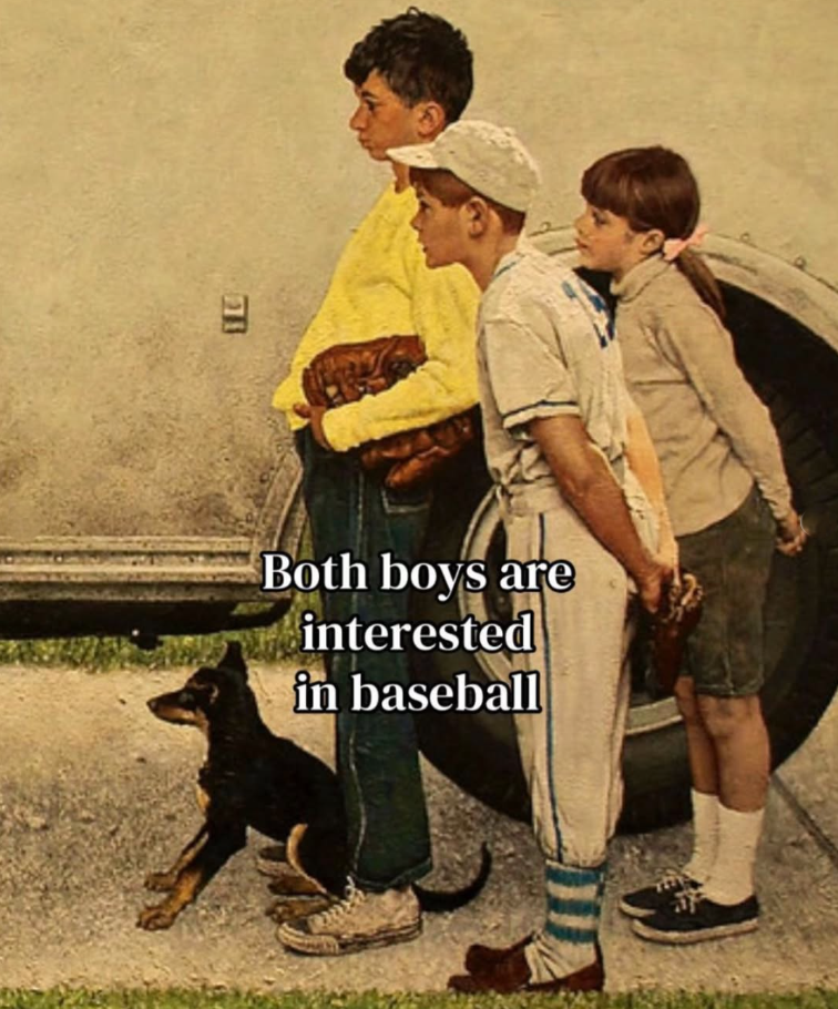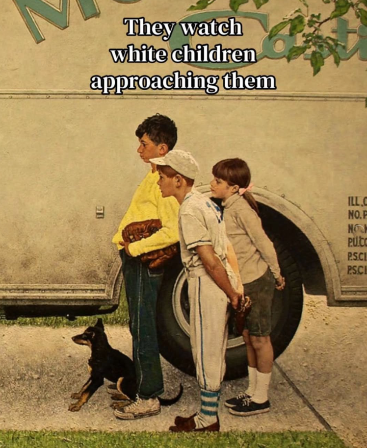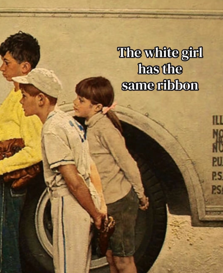 Rockwell’s genius lies in his ability to capture a moment before it hardens. These children have not yet fully absorbed the weight of the world around them. They are still in that fragile space where difference is something to notice, not to fear.
