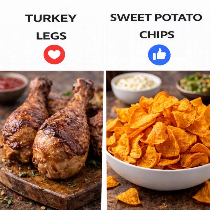 🍗🔥 Turkey Legs Succulent turkey legs roasted or grilled to achieve tenderness and rich flavor. Smoky, savory, and utterly satisfying, they’re ideal for hearty meals, festivals, and special occasions. 😋✨ 🍠✨ Sweet Potato Chips Crispy sweet potato chips, thinly sliced and fried or baked to a golden finish. Slightly sweet, crunchy, and delightful, they make for a tasty alternative snack.