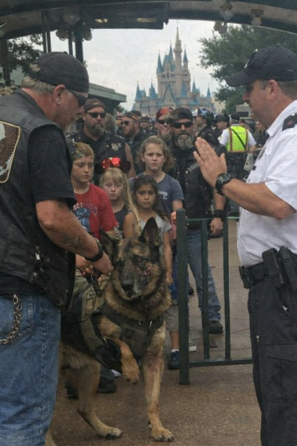 Three Hundred Tattooed Bikers Arrived at a World-Famous Theme Park With One Hundred Orphans Hoping to Give Them One Perfect Day of Joy — But Everything Came to a Halt When Security Refused to Let a Scarred Three-Legged Military Dog Through the Gate