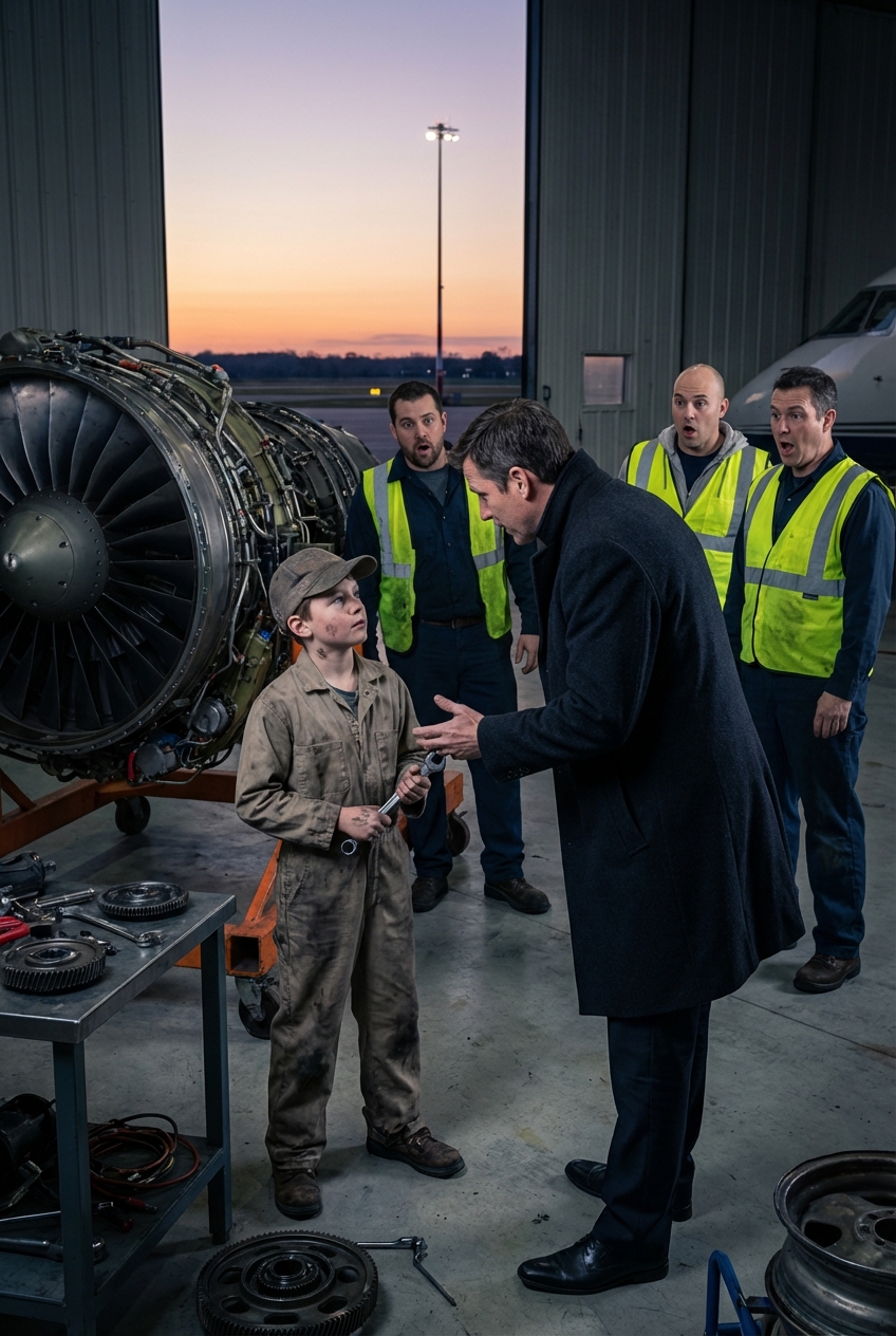 Airport engineers declared the engine beyond repair, yet a 12-year-old boy quietly restored the turbine using an old toolbox. When it roared back to life, everyone realized he was continuing his father’s remarkable legacy.