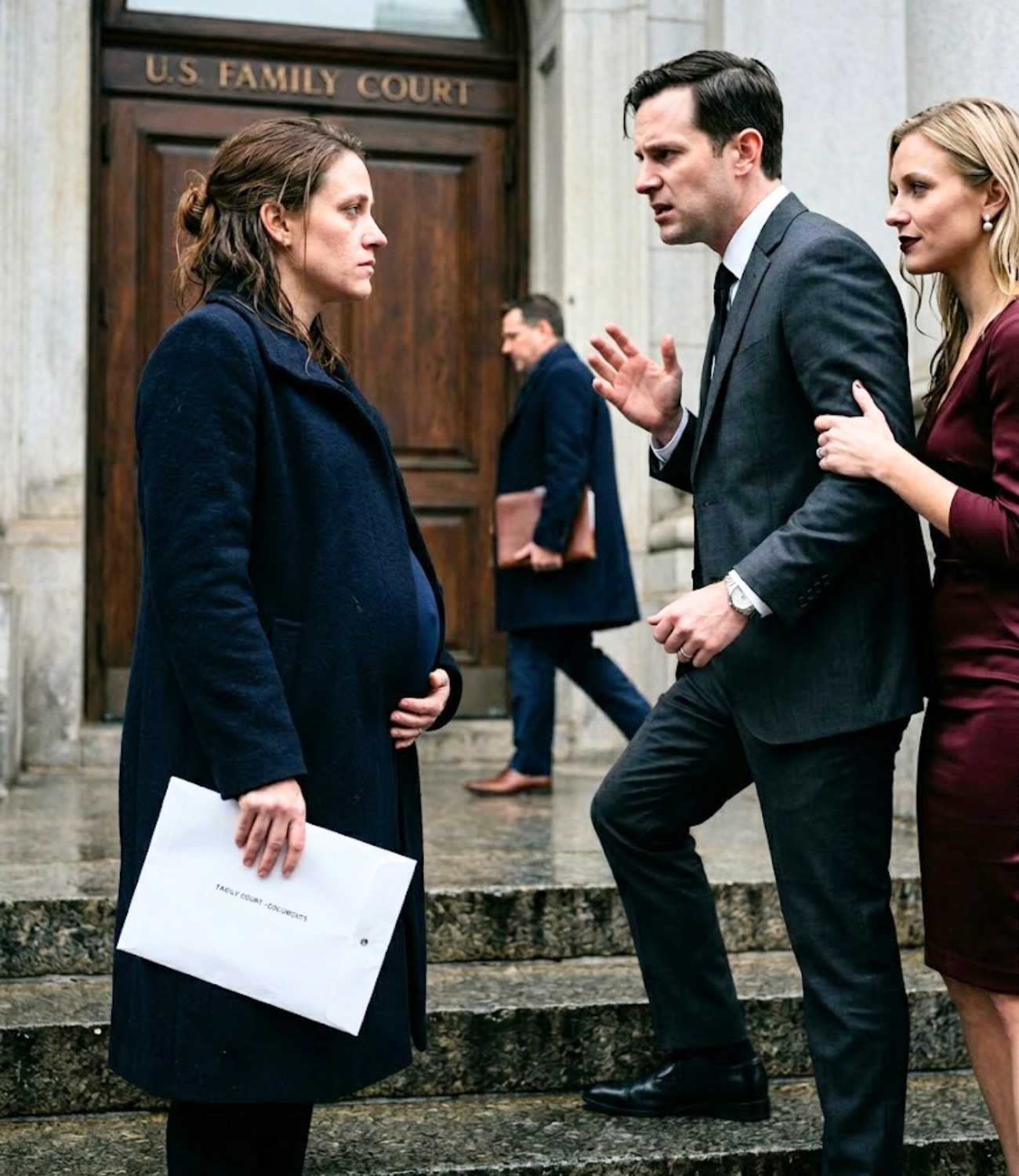 Rain had soaked the shoulders of the navy coat dark enough to almost look black. A bead of water slid from the man’s cuff and hit the courthouse tile between Gregory’s shoes. The leather folder in his hand had a deep blue seal pressed into the corner. Gregory saw it before he saw the man’s face. Ashley’s nails dug into his sleeve hard enough to wrinkle the fabric. Dana went still beside me. Somewhere behind us, a clerk laughed at something down the hall, and the sound died the second the man said, very clearly, ‘Gregory Hale, you’ve been served in your individual and professional capacity.’